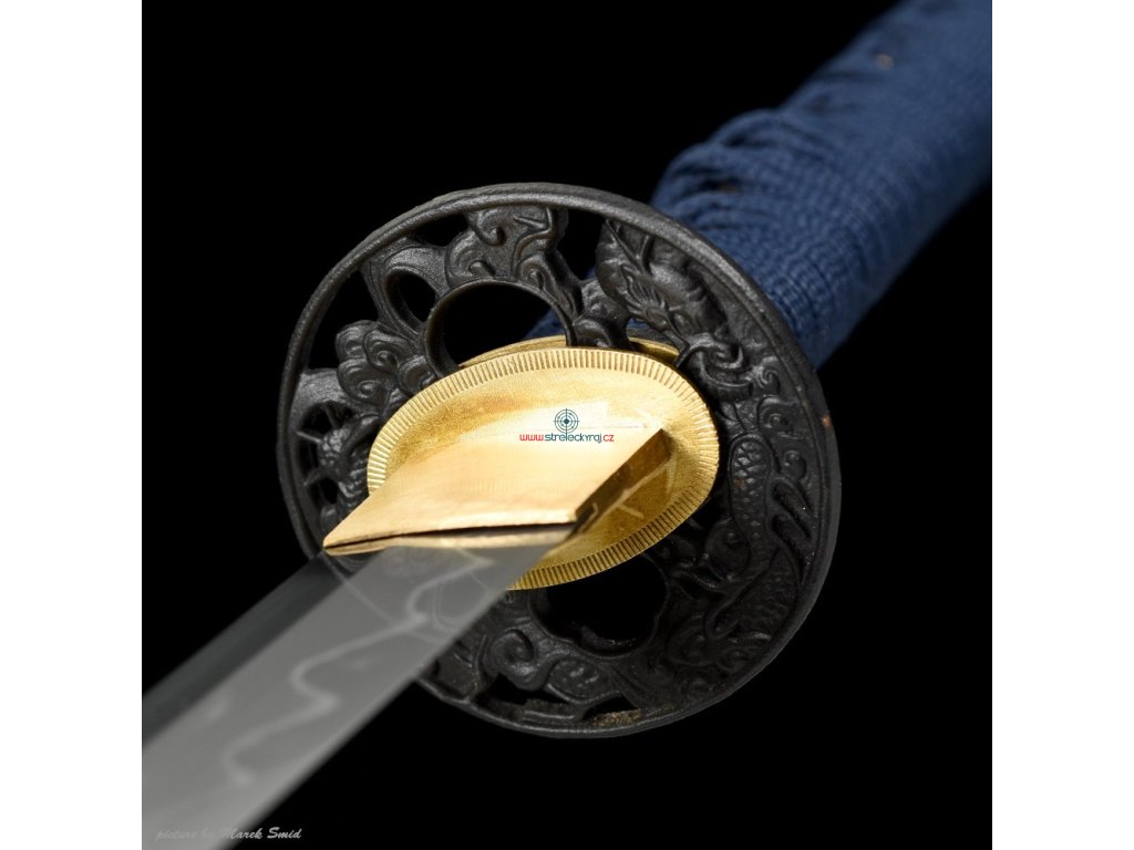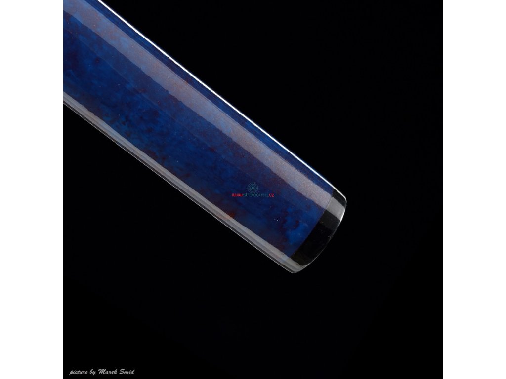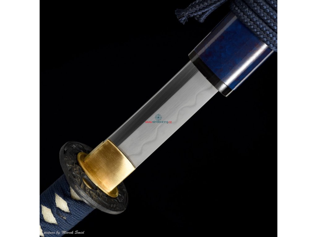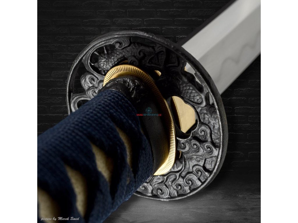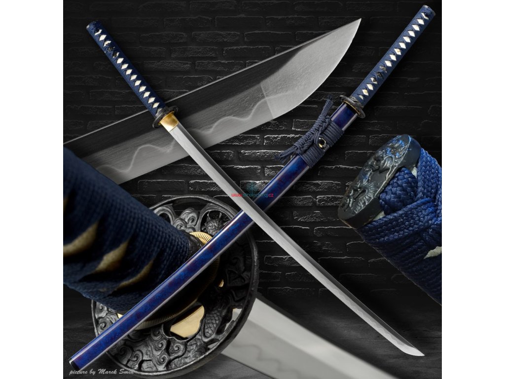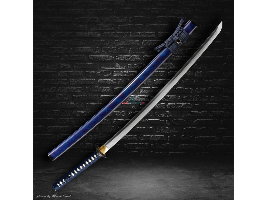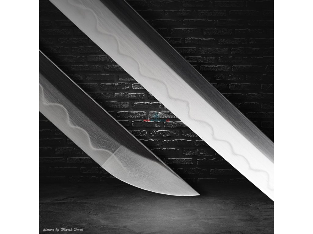Kovaná čepel z oceli T-10 té nejvyšší kvality. Ocel byla laminována v monokompositní konfiguraci Maru - diferenciálně tvrzená. Uhlíková ocel T-10 (obsah 1,1% uhlíku a 0,4% manganu) je velmi pevná a skvěle drží ostrost. Čepel bez žlábku bo-hi byla ve finální fázi ručně leštěna kamenem hazuya - tím je dosaženo téměř žiletkového ostří (razor sharp) a zrcadlového lesku. Výrazný reálný Choji hamon je tvořen dle dávných tradičních metod, které vychází z mnohaletých zkušeností kovářského mistra, který výrobou této nádherné zbraně strávil několik dnů. Vše na tomto meči je individuálně zhotoveno, včetně saye a habaki, jsou použity nejkvalitnější komponenty, včetně špičkového laku na sayu, japonského hedvábí a skutečné rejnočí kůže nejvyšší kvality. Jedná se o špičkovou repliku samurajského meče, která je vhodná k sekovým zkouškám a lze ji rozložit na jednotlivé části. Tato čepel byla vyzkoušena a testována tak, aby odstranila vše co jí stojí v cestě ! Sori (zakřivení čepele) je speciálně navrženo tak, aby bylo dosaženo co možná nejjemnějších a nejčistších řezů. To vše v kombinaci s výběrem tradičního kovaného Koshirae zaručuje, že získáte to nejlepší z hlediska vzhledu i funkčnosti. Uhlíková ocel T-10 má působivou tvrdost HRC 58 - perfektní kombinace této tvrdosti je podtrženo zakřivením čepele Sori, které umožňuje snadné přeseknutí tatami, slaměné rohože, nebo bambusu pro tameshigiri. Full tang konstrukce této katany výrazně zvyšuje sílu meče. Čepel je typu shinogi-zukuri, tento typ čepele se vyrábí od 10.století našeho letopočtu. Hrot meče o kissaki se skutečným Diamond-Shaped Yokote, které je velmi dobře definováno tím, že hamon prochází po celé délce přes Boshi. Yokote je velmi důležité pro strukturální integritu špičky meče. Pomáhá absorbovat otřes, rozptýlí sílu a přispívá k stabilitě a síle meče při tzv. sekořezu. Tato katana (samurajský meč) je vhodná na použití v praxi, firma Dellinger se však zříká jakékoliv odpovědnosti za zranění a poškození vzniklá při použití. Schraňujte mimo dosah dětí ! Jakákoliv manipulace se samurajským mečem je na vaší vlastní odpovědnost. Nezapomeňte, že máte ve svých rukou smrtící zbraň !