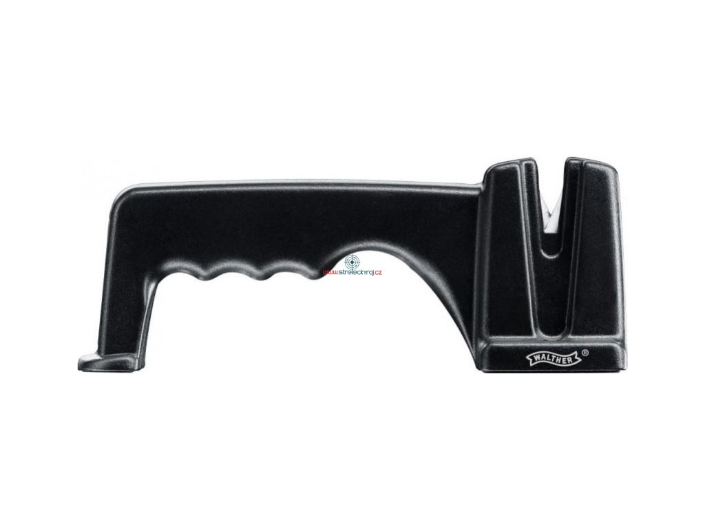 Brúska Walther s jednou brúsnou drážkou v tvare písmena "V" má ergonomicky tvarovanú rukoväť z pevného a odolného plastu. Pri brúsení stačí čepeľ noža jednoducho ťahať brúsnou drážkou.