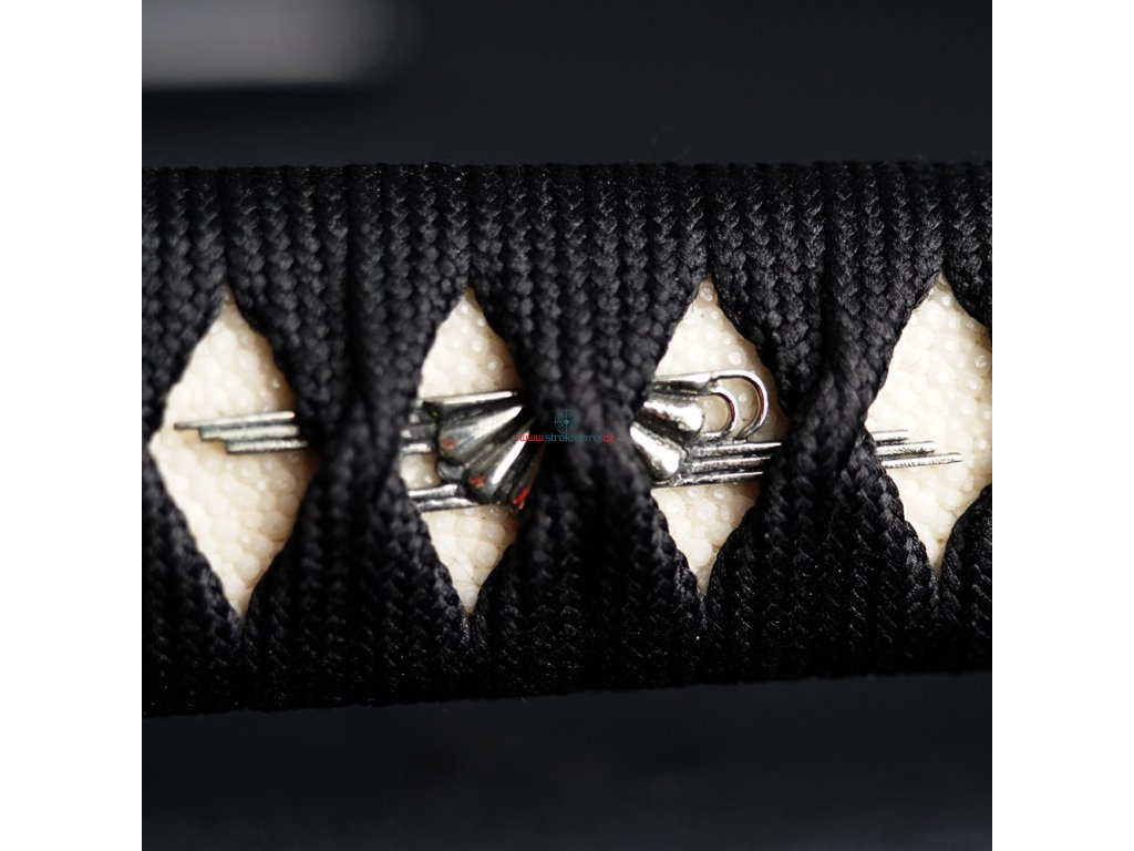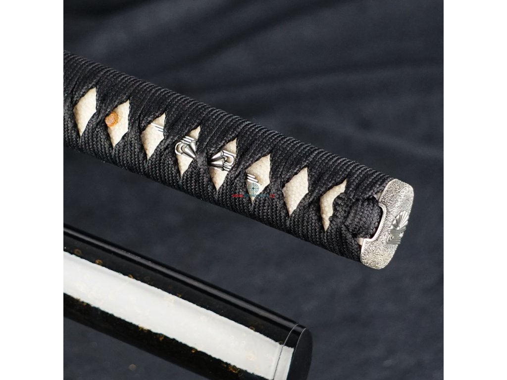 Tsuka: (rukojeť) dřevěné jádro obalené pravou černou kůží z rejnoka (Samegawa) s černým opletem - Ito. Čepel katany je zajištěna dvěma mekugi (bambusové kolíky). Čepel od rukojeti můžete odmontovat vytažením těchto kolíků. Na každé straně Tsuky (rukojeti) je menuki (stříbrný ornament pod opletem). Výrazné zdobené zakončení rukojetí (Kashira).