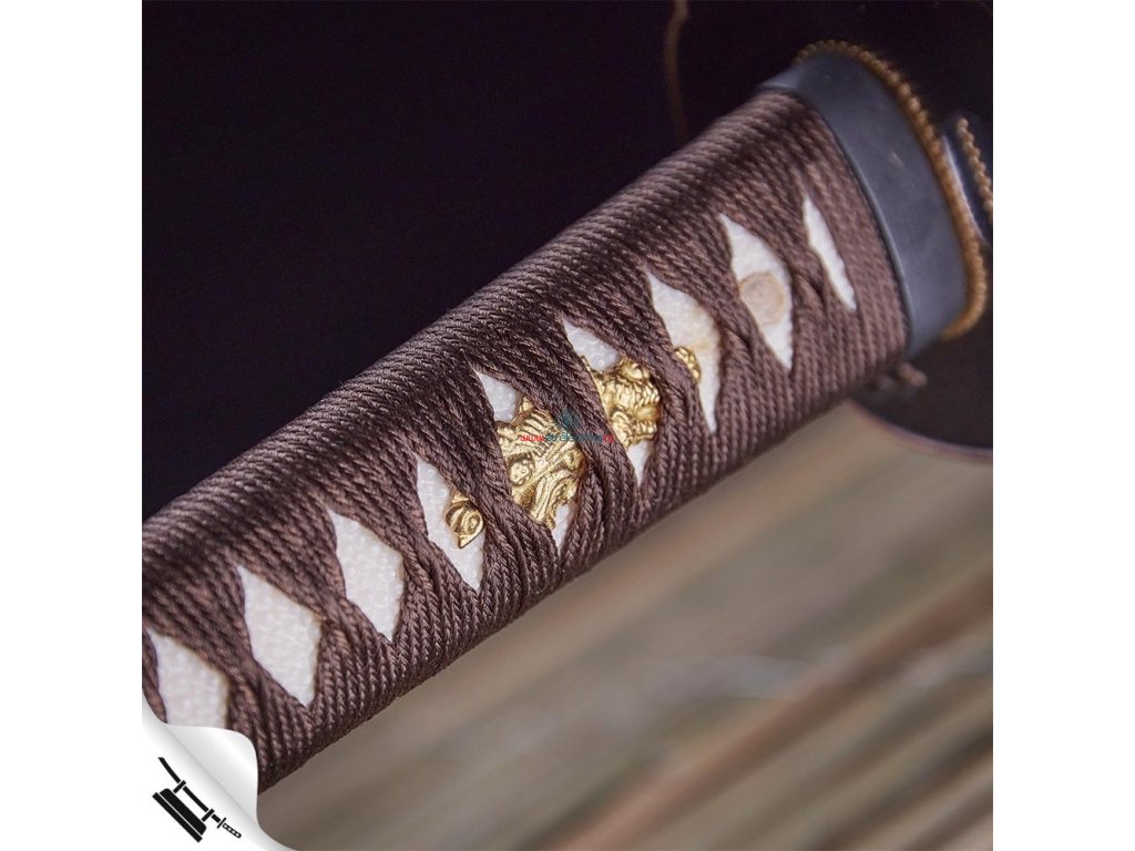 ✅ tsuka: (rukojeť) dřevěné jádro s vloženou pravou kůží z rejnoka (Samegawa) oplet ITO hnědé barvy. Čepel katany je zajištěna dvěma bambusovými kolíy (mekugi). Čepel od rukojeti můžete odmontovat vytažením těchto kolíků. Na obou stranách Tsuky je menuki (ornament).