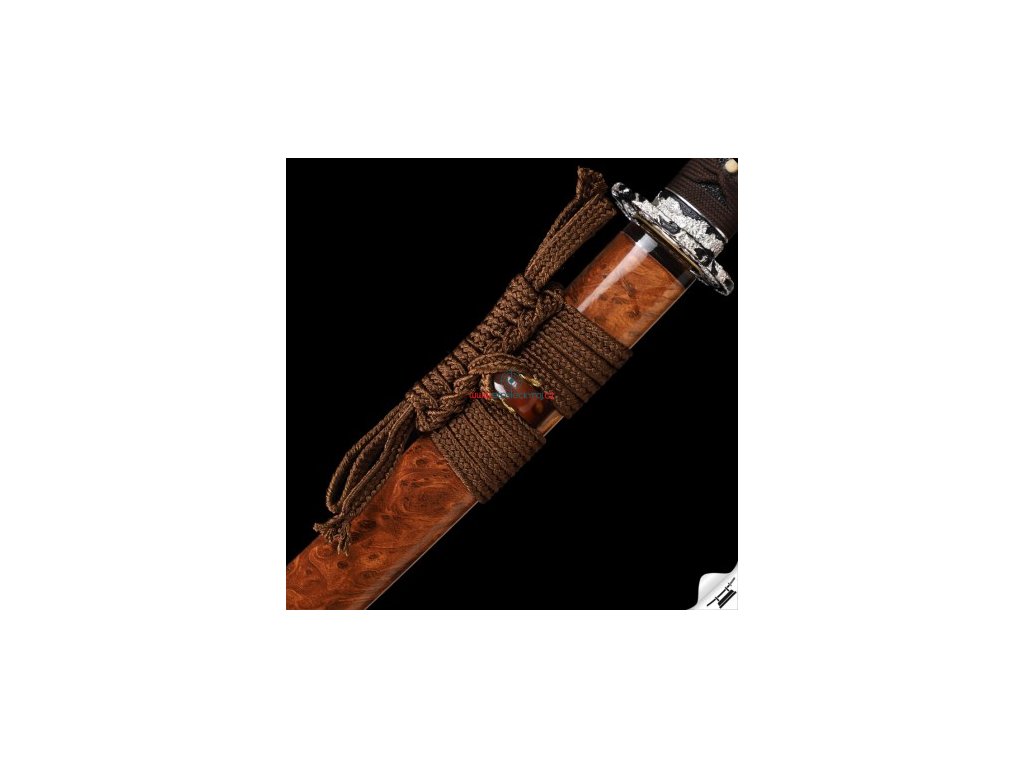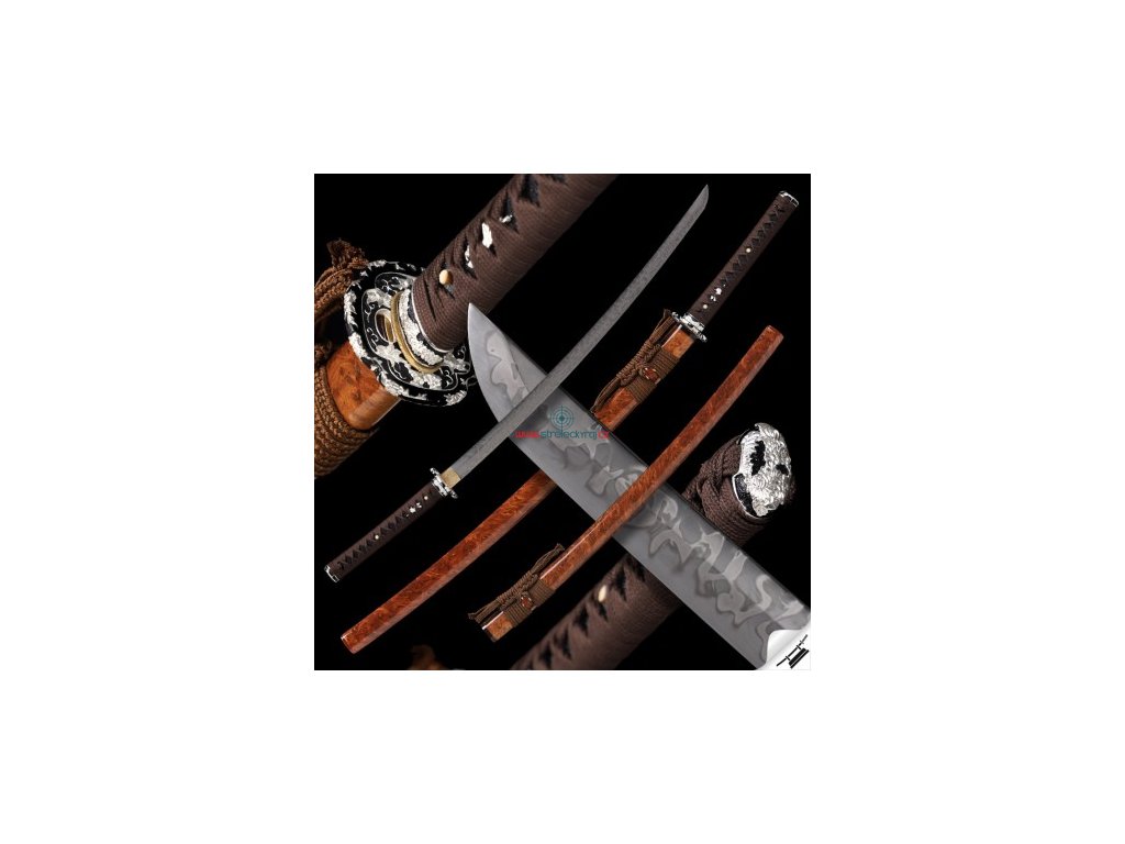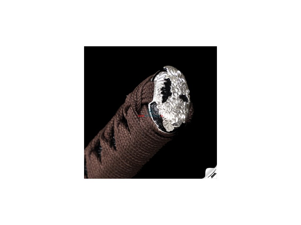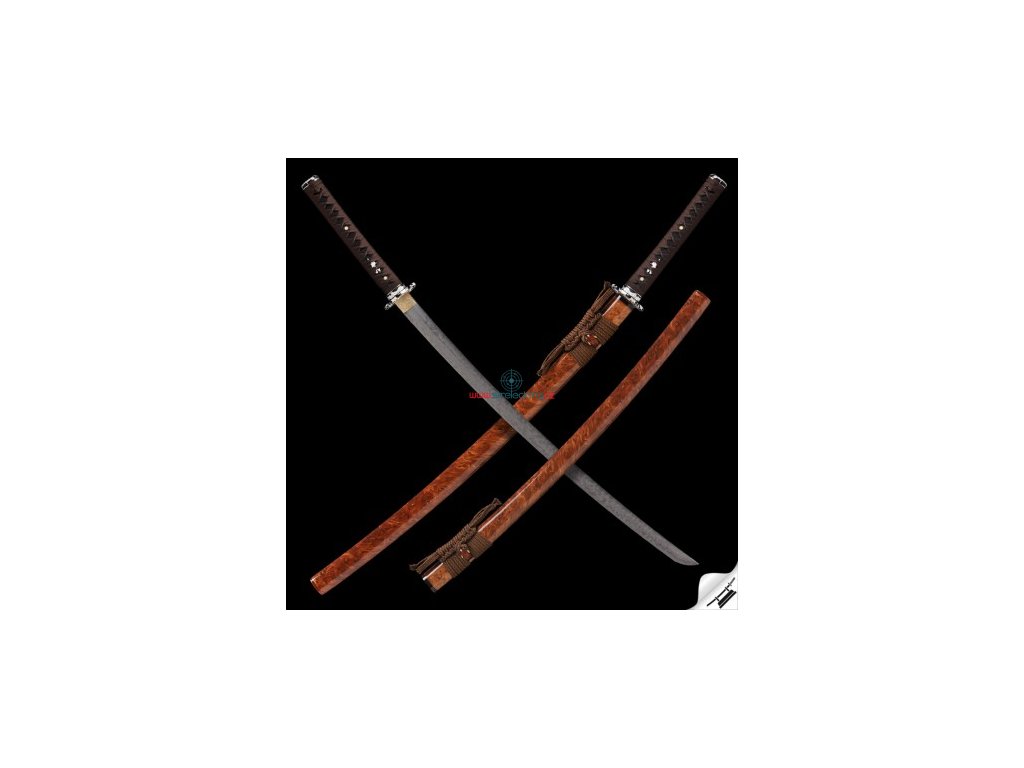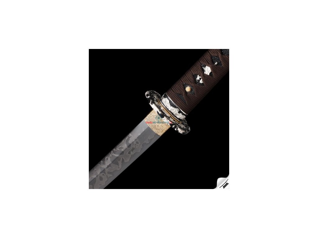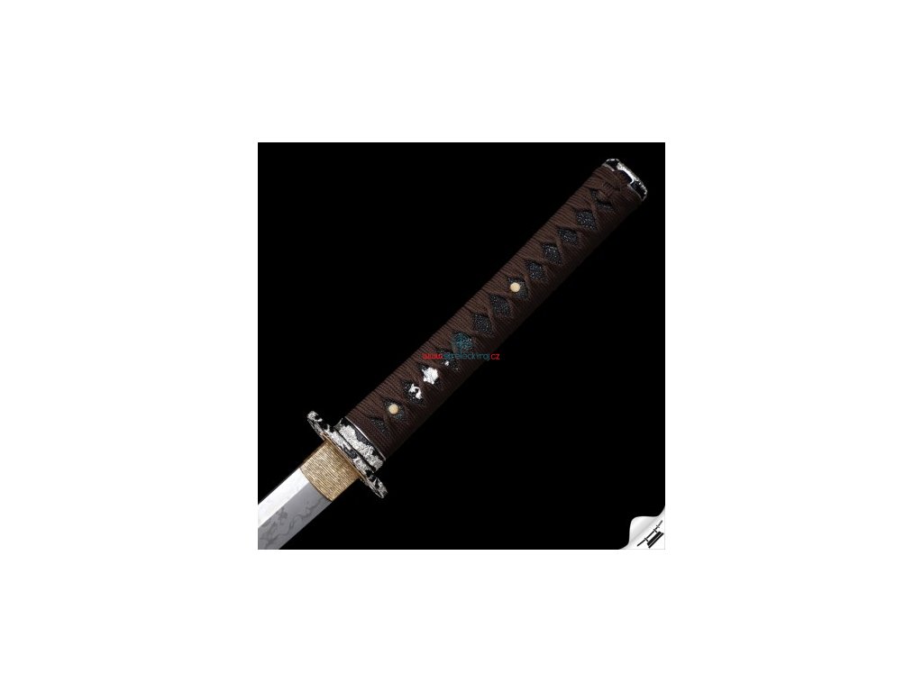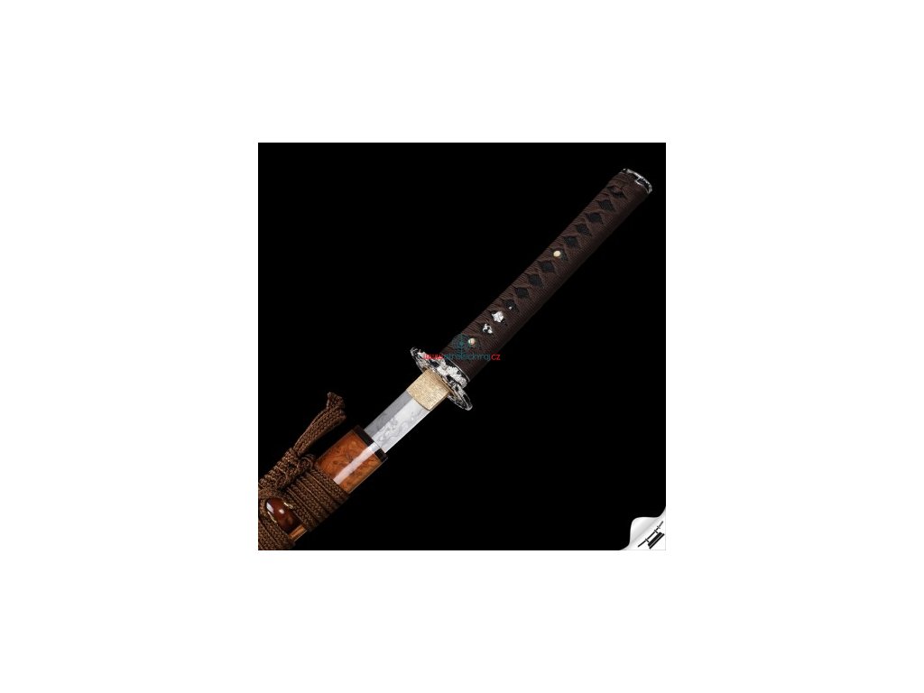 ✅ Tsuka: (rukojeť) dřevěné jádro, potažena pravou rejnočí kůží (Samegawa), s hedvábnou hnědou omotávkou ITO. Čepel zajištěna 2 kolíky "mekugi"