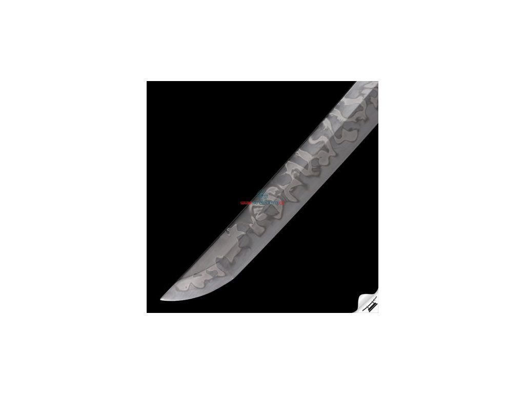 Výrazný reálný a nevšední hamon HITATSURA je tvořen dle dávných tradičních metod, které vychází z mnohaletých zkušeností kovářského mistra, který výrobou této nádherné zbraně strávil několik dnů. Vše na tomto meči je individuálně zhotoveno, včetně saye a habaki, jsou použity nejkvalitnější komponenty, včetně špičkového laku na sayu, japonského hedvábí a skutečné rejnočí kůže nejvyšší kvality. Jedná se o špičkovou repliku samurajského meče, která je vhodná k sekovým zkouškám a lze ji rozložit na jednotlivé části. Tato čepel byla vyzkoušena a testována tak, aby odstranila vše co jí stojí v cestě ! Sori (zakřivení čepele) je speciálně navrženo tak, aby bylo dosaženo co možná nejjemnějších a nejčistších řezů. To vše v kombinaci s výběrem tradičního kovaného Koshirae zaručuje, že získáte to nejlepší z hlediska vzhledu i funkčnosti. Uhlíková ocel T-10 má působivou tvrdost HRC 58 - perfektní kombinace této tvrdosti je podtrženo zakřivením čepele Sori, které umožňuje snadné přeseknutí tatami, slaměné rohože, nebo bambusu pro tameshigiri. Full tang konstrukce této katany výrazně zvyšuje sílu meče. Čepel je typu shinogi-zukuri, tento typ čepele se vyrábí od 10.století našeho letopočtu. Hrot meče ko kissaki se skutečným Diamond-Shaped Yokote, které je velmi dobře definováno tím, že hamon prochází po celé délce přes Boshi. Yokote je velmi důležité pro strukturální integritu špičky meče. Pomáhá absorbovat otřes, rozptýlí sílu a přispívá k stabilitě a síle meče při tzv. sekořezu. Tato katana (samurajský meč) je vhodná na použití v praxi, firma Dellinger se však zříká jakékoliv odpovědnosti za zranění a poškození vzniklá při použití. Schraňujte mimo dosah dětí ! Jakákoliv manipulace se samurajským mečem je na vaší vlastní odpovědnost. Nezapomeňte, že máte ve svých rukou smrtící zbraň !