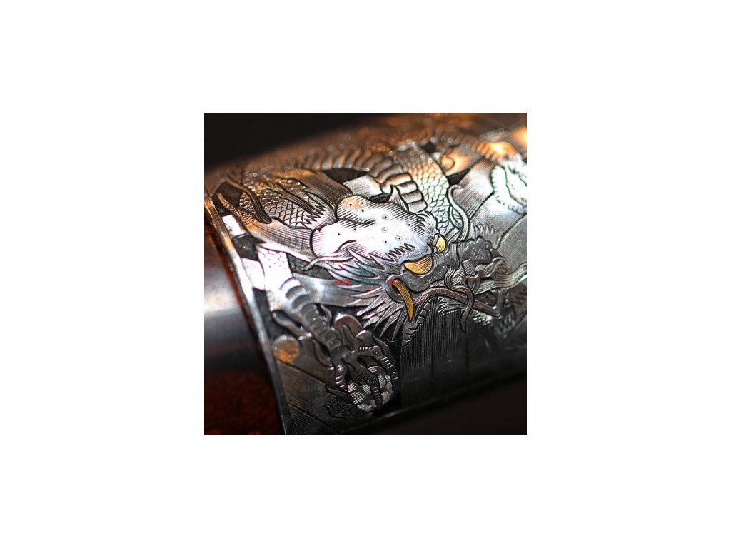 Gravírování je jednou z nejuznávanějších a nejnáročnějších ozdob kovu. Rytina vykládaná zlatem je mnohem náročnější a složitější než je tomu u klasické umělecké formy rytí. Vykládání zlatem zahrnuje vytvoření jemné rytiny s hlubokým reliéfem a vložení 24K zlata do vybraných částí rytiny. Pro tvorbu rytin na noži "Dragon Sign Engraved" zvolil Dellinger světově proslulého mistra rytců, který ztvárnil nejjemnější detaily jak do rukojeti, tak i do ostří nože. Každá rytina je pečlivě koncipována a kontrolována.