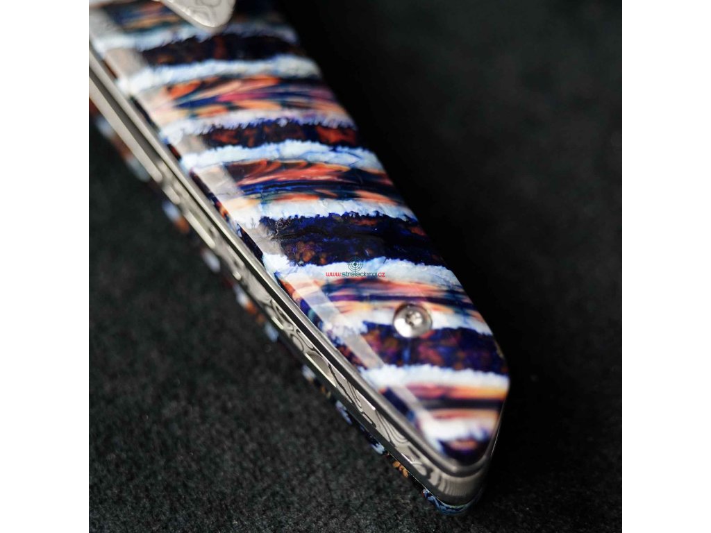 Rukojeť je kombinací mohutného damaškového kování a stabilizované fosílie zubu z mamuta