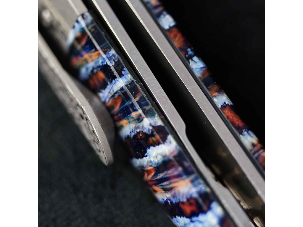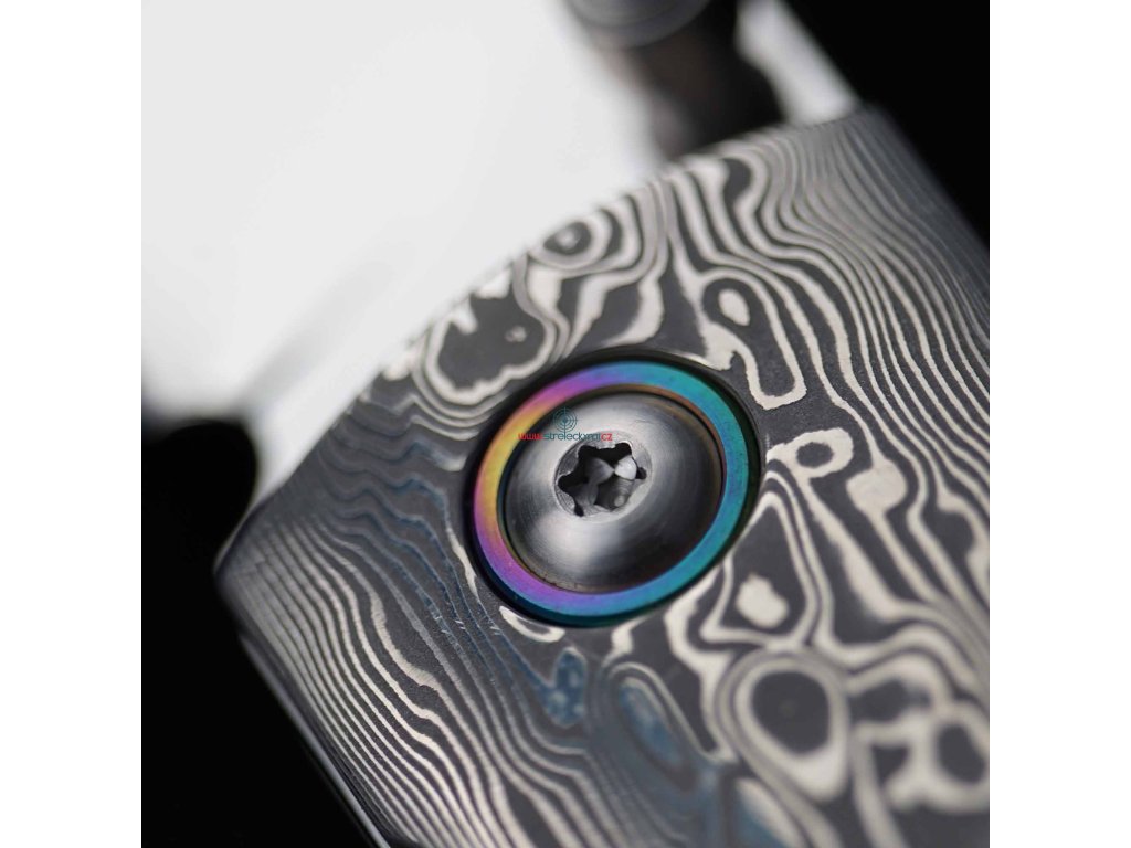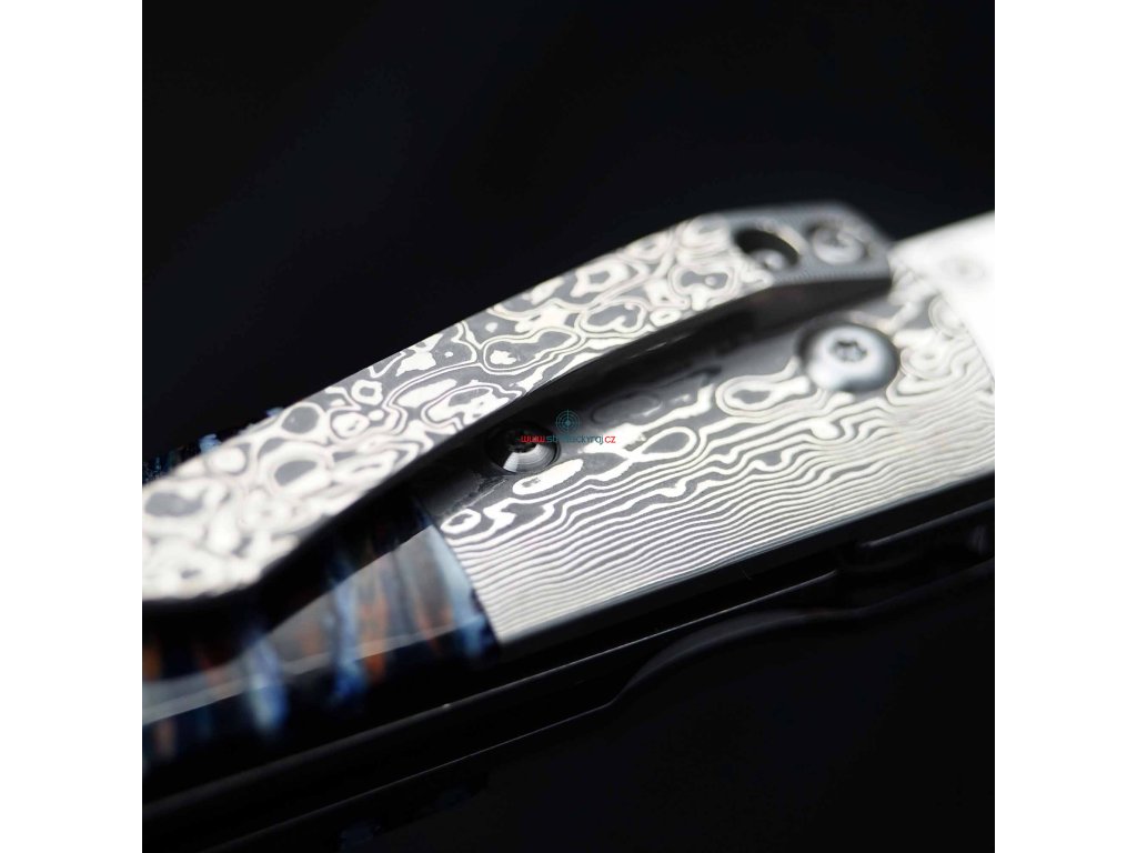 Čepel z leštěné oceli India Wootz, která je legendou mezi ocelemi. Tato vyjímečná ocel má dlouhotrvající ostrost při tvrdosti okolo R62 +/- 1 Rockwella, mimořádnou odolnost a houževnatost. Čepel typu Wharncliffe je pevně zajištěna pojistkou proti samovolnému zavření liner-lock.