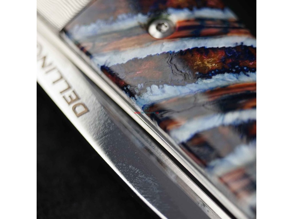 Neotřelý zavírací nůž je věrným partnerem každého milovníka přírody. Nabízí velmi ostrou čepel a rukojeť ze stabilizovaného mamutíh zubu, která skvěle padlne do ruky. Použitý materiál zabezpečuje trvanlivost nože a dlouhodobou ostrost. Dellinger Haguruma se může stát jedinečným rodinným pokladem, který přežije i vaše vnoučata. Nože jsou vyráběny tradičním způsobem (ručně), což zaručuje mimořádnou pevnost čepele a odolnost vůči otupení. Čepel je uložena v kuličkovém ložisku a otevírání nože je víceméně bez odporu.