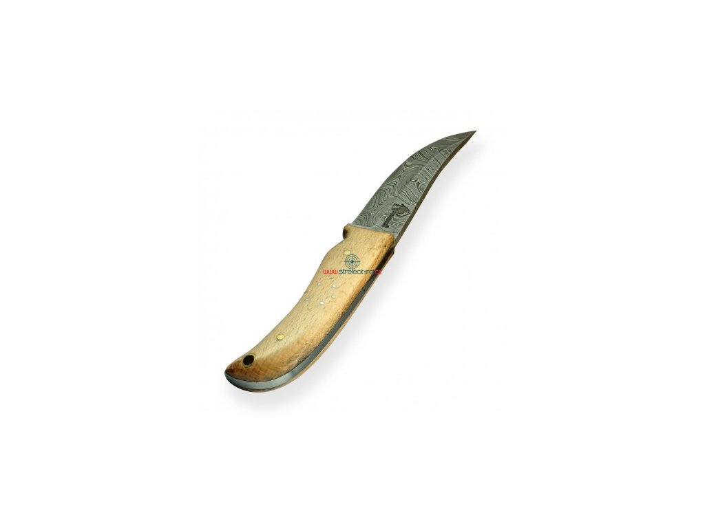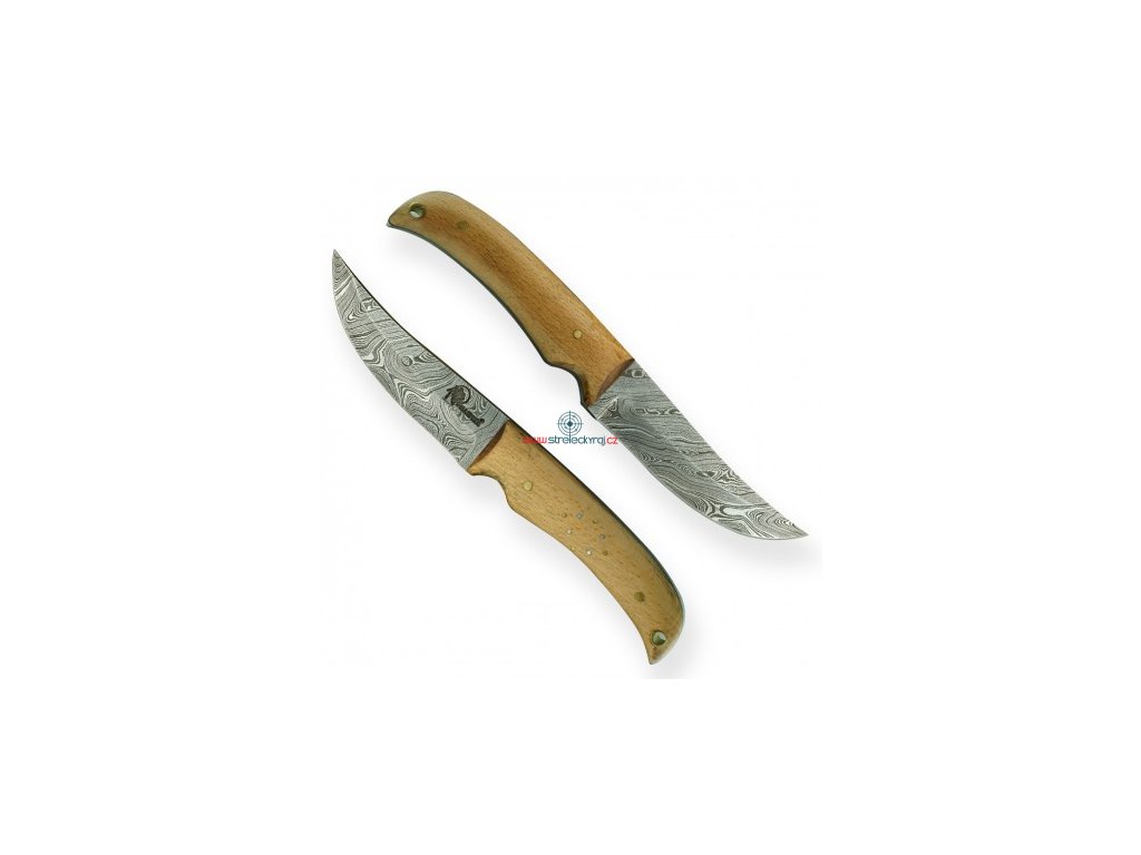 Bojový nůž Dellinger Skinner Damask Birch Wood je velmi praktický lovecký nůž s pevnou čepelí. Čepel nože je vyrobena z damaškové uhlíkové oceli, kdy vyšší obsah uhlíku přispívá k její větší tvrdosti a odolnosti materiálu, snáze se brousí. Nůž není nerezový. Díky tomu je potřeba o čepel také více pečovat - pravidelná údržba, včetně vytření do sucha po použití a následném naolejování - tím minimalizujete riziko koroze. Postupem času nůž přijme krásnou patinu, čímž se stane ještě jedinečnějším. Rukojeť je vyrobená z březového dřeva. Dřevo z břízy je pružné, pevné a velmi odolné. Rukojeť má barvu šedožlutou až hnědobílou. Nůž je dodávaný s koženým pouzdrem.