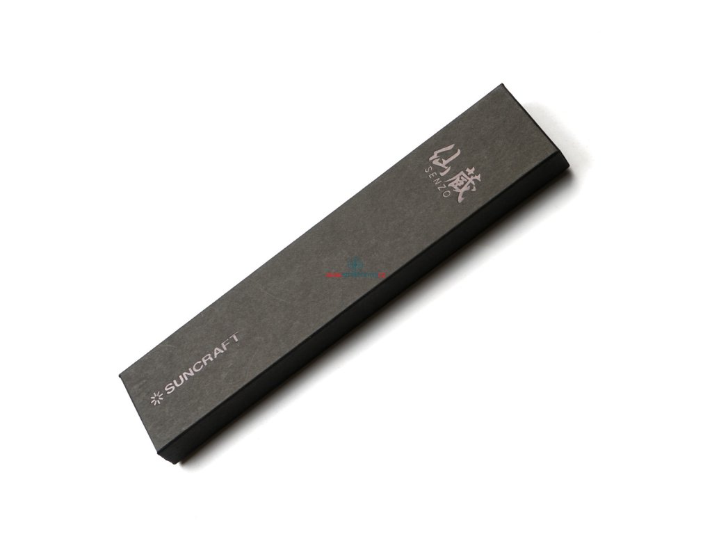 Velmi ostrý japonský nůž na okrajování ovoce a zeleniny Petty 120 mm Suncraft VG-10 Black Damascus je užitečnou alternativou velkého šéfkuchařského nože v okamžiku kdy potřebujete přesné řezy, nebo například krájení zelených fazolí nebo jiné menší zeleniny a ovoce. Jsou vhodné též pro špikování a krájení masa. Zaoblené ostří umožňuje mírné kývání při řezu. Jeho ostrost je ideální pro přípravu sendvičů všeho druhu. Japonské umění a nové technologie činí tento nůž jedinečným a nenapodobitelným.
