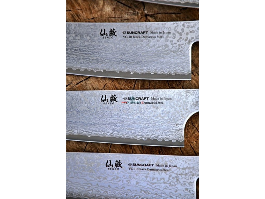 ✅ japonský nůž Petty 120 mm Suncraft VG-10 Black Damascus z damascénské oceli ( damascus steel ), nikdy neumývejte v myčce na nádobí. Pro zachování ostrosti nůž ručně omyjte a ihned osušte.