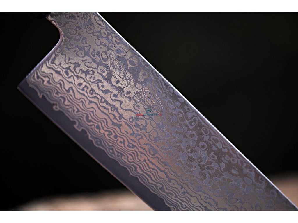 Ostření nože: pro ostří kuchyňského nože z japonské oceli VG-10 doporučujeme použití diamantových a vodních brusných kamenů. Pokud si nejste 100% jisti svými schopnostmi a šikovností, obraťte se na nás. Případně vyhledejte profesionálního brusiče ve Vašem okolí. Škody, které by mohly vzniknout při neodborném broušení jsou nevratné.