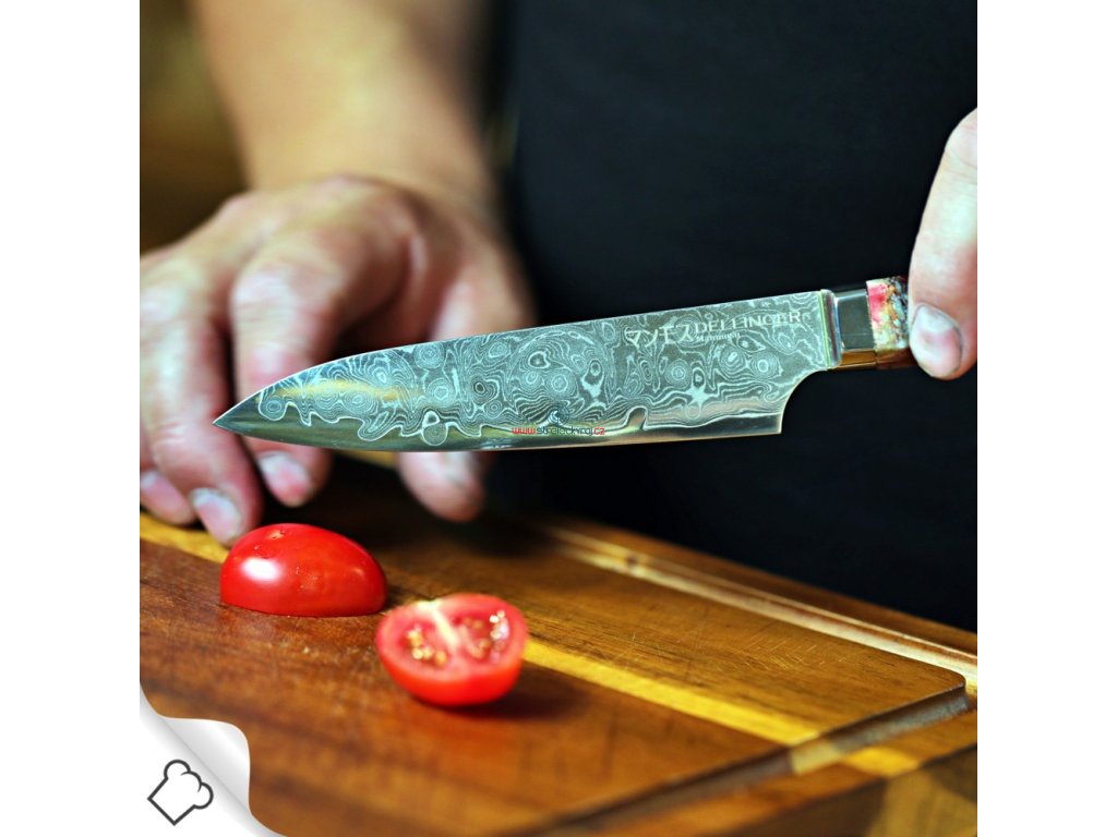 S tímto univerzálním nožem nakrájíte ovoce a zeleninu bez mačkání, snadno naporcujete menší kusy masa a sýrů. Špikování pro Vás bude s tímto nožem prostě radost. Tímto nožem nahradíte velký nůž Chef ve chvíli, kdy potřebujete precizní řezy. Je to šikovný pomocník i při zpracovávání bylinek.