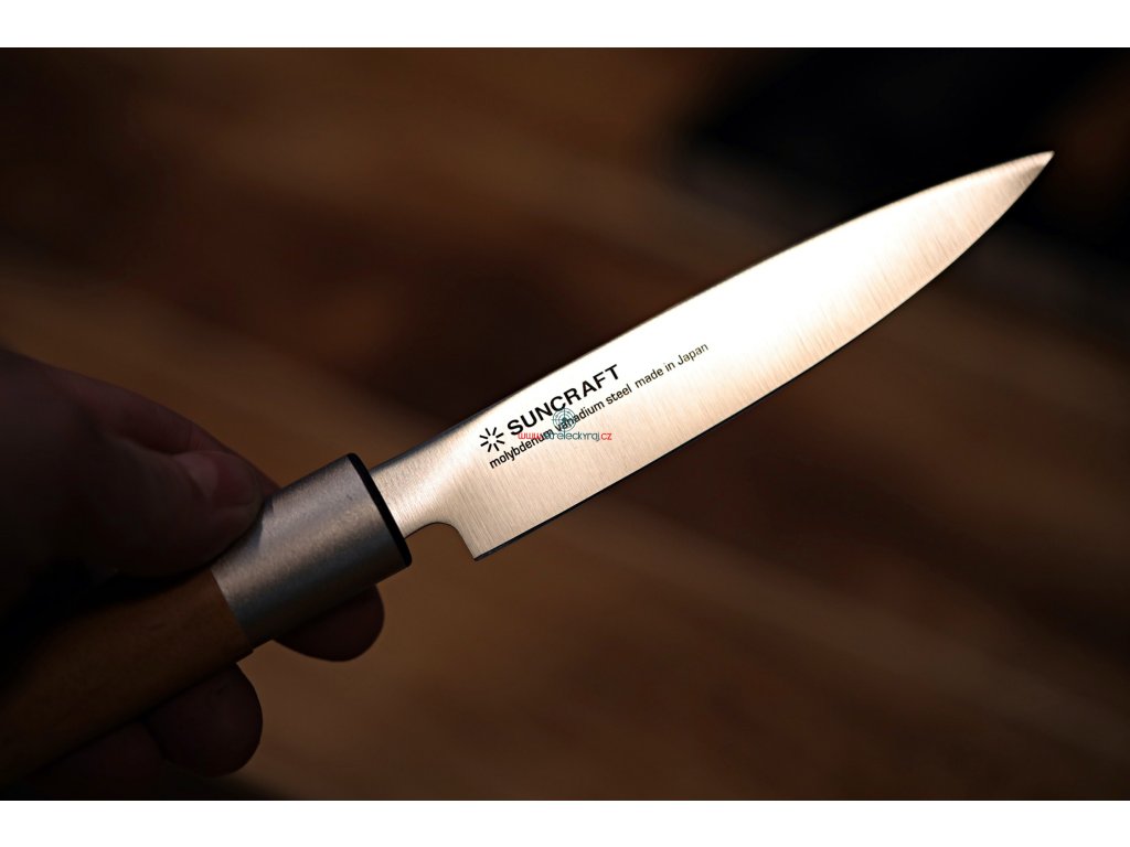 ✅ japonský nůž na okrajování ovoce a zeleniny Utility 120 mm Suncraft SENZO Japanese z molybdenvanadiové oceli. Pro zachování ostrosti nůž ručně omyjte a ihned osušte.