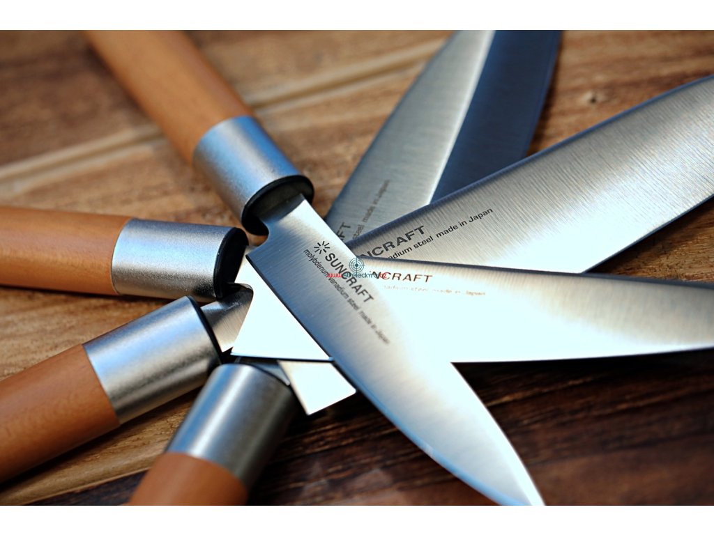 Velmi ostrý japonský nůž na okrajování ovoce a zeleniny Utility 120 mm Suncraft SENZO Japanese. Tento nůž je užitečnou alternativou velkého šéfkuchařského nože v okamžiku kdy potřebujete přesné řezy, nebo například krájení zelených fazolí nebo jiné menší zeleniny a ovoce. Jsou vhodné též pro špikování a krájení masa. Zaoblené ostří umožňuje mírné kývání při řezu. Jeho ostrost je ideální pro přípravu sendvičů všeho druhu. Dlouhá čepel a kulatá rukojeť ze dřeva magnolie Vám poskytne tu nejlepší kontrolu při řezání a krájení. Tato série nožů je nápadně podobná nožům KAI Wasabi - kvalita a zpracování je však na mnohem vyšší úrovni !