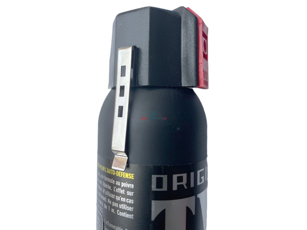 Sprej je vybavený bezpečnostnou poistkou Flip-Top, ktorý zabraňuje nechcenému spusteniu spreja. Stračí iba zatlačiť palcom na veko smerom nahor a veko sa potom automaticky sklopí.