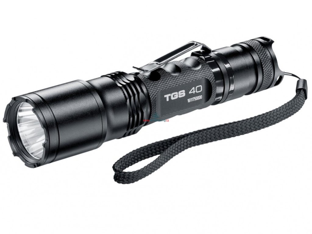 Svietidlo Walther TGS 40 má tri režimy svitu. Po zapnutí svieti v režime 100%, tj až do výkonu 600 lúmenov. Opätovným stlačením tlačidla obdržíte úsporný režim svietidla, tj. do výkonu 60 lúmenov. Dlhým stlačením spínača spustíte režim "stroboskop".