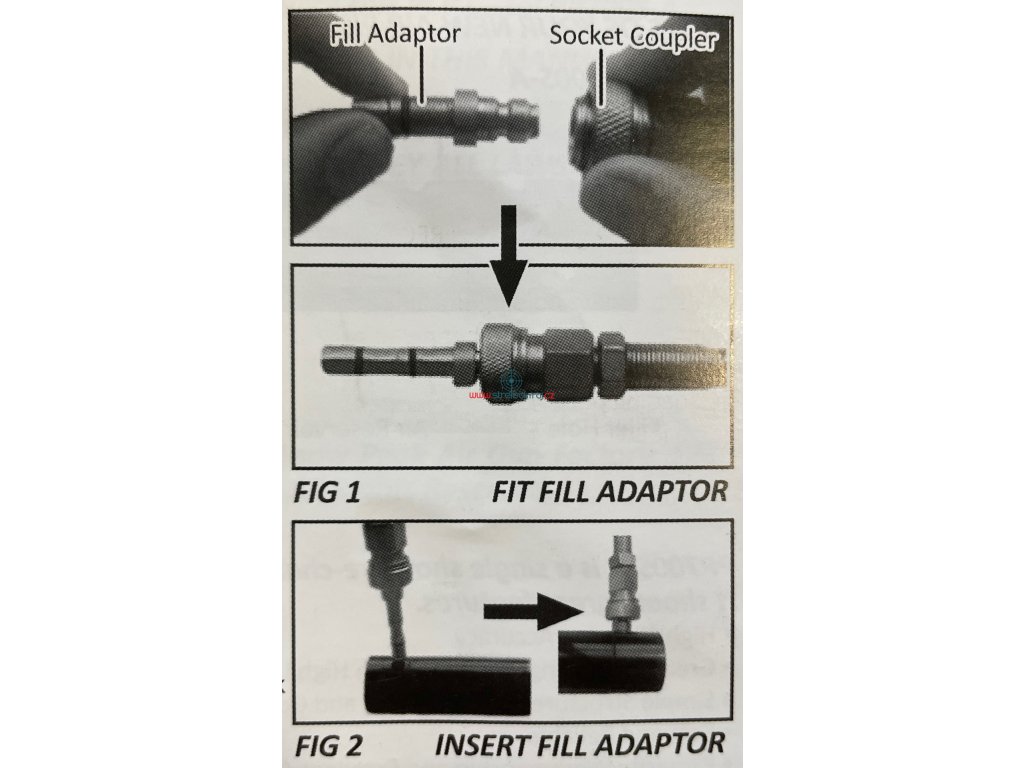 Maximálny plniaci tlak je 200 barov a aktuálny tlak je možné kontrolovať na manometri umiestnenom na prednej strane kartuše. Na plnenie ručnou pumpou alebo prepúšťaním z fľaše je súčasťou balenia Quick Fill ventil, ku ktorému je potrebné zakúpiť rýchlospojku. V prípade plnenia z fľaše je lepšie využiť hadicu s vlastným manometrom a poistným ventilom pre vyššiu bezpečnosť.
